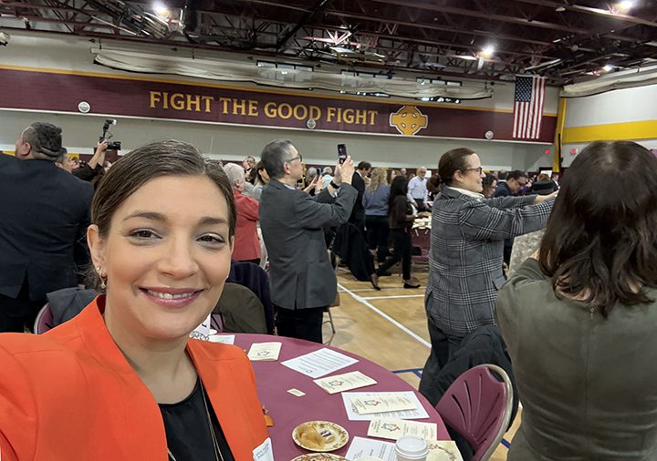 The final speaker at the Annual Thanksgiving Diversity Breakfast organized by the AJC, Rabbi Adam Baldachin from the Shaaray Tikvah temple, asked us all to stand and take a photo to share on our social media, spreading the message that unity and peace are possible during these upcoming holidays.